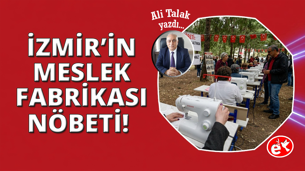 Başkan Cemil Tugay ve İzmirlilerin başlattığı "Ata Mirası Nöbeti" devam ederken, hafızalara kazınan o fotoğraf karesi aslında her şeyi özetliyor: Atölyelerden çıkarılan dikiş makineleri, teknik ekipmanlar ve tezgahlar bahçede, ağaçların altında...