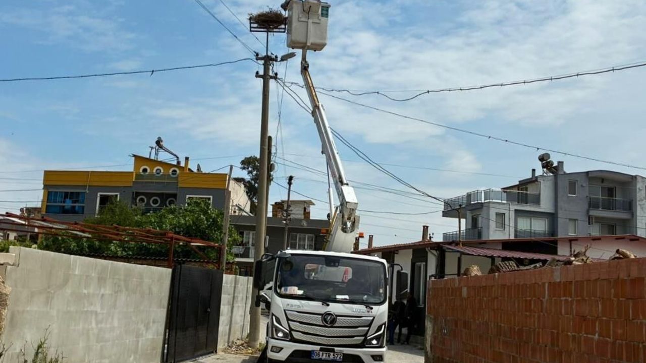 Aydın’ın Söke ilçesi Sazlı Mahallesi’ne gelen leyleklere ekipler tarafından yeni yuva yapıldı.